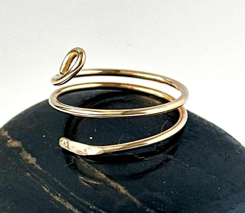 A handmade 14 carat gold filled Ring, that can be slightly adjusted. Hammered textured/smooth finish.