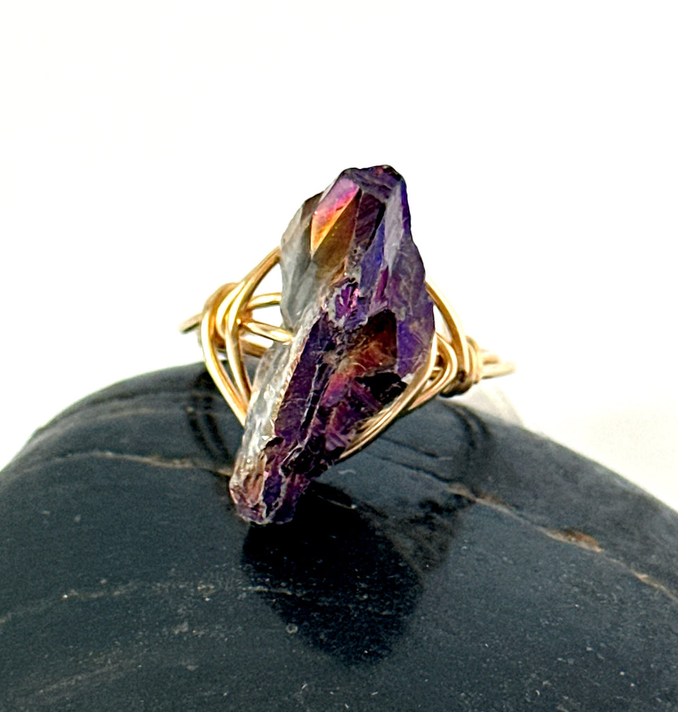 Titanium Rock Crystal Raw Quartz Statement 14 carat gold filled wire ring.