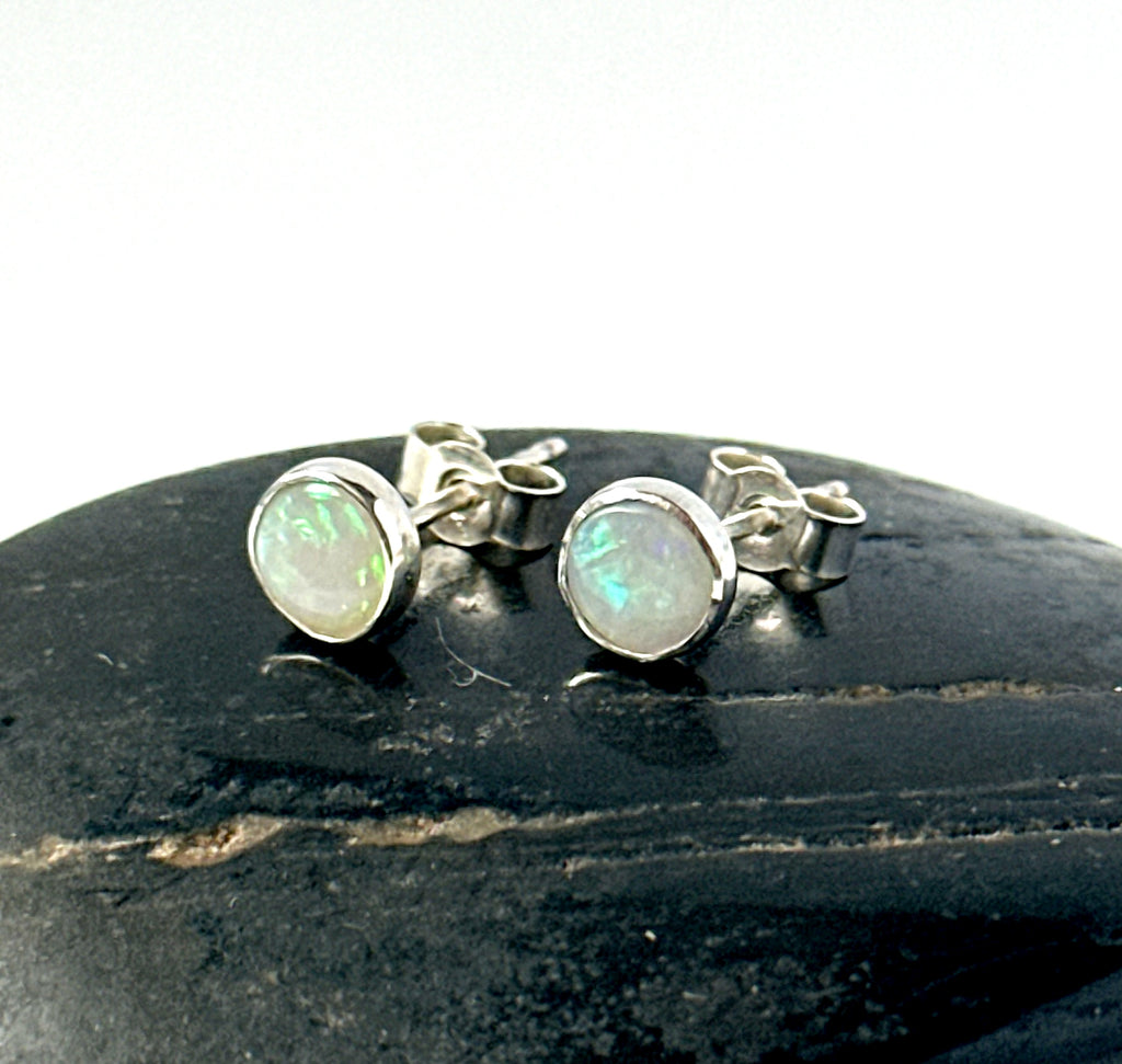 Very pretty Coober Pedy Opal sterling silver handmade stud earrings.