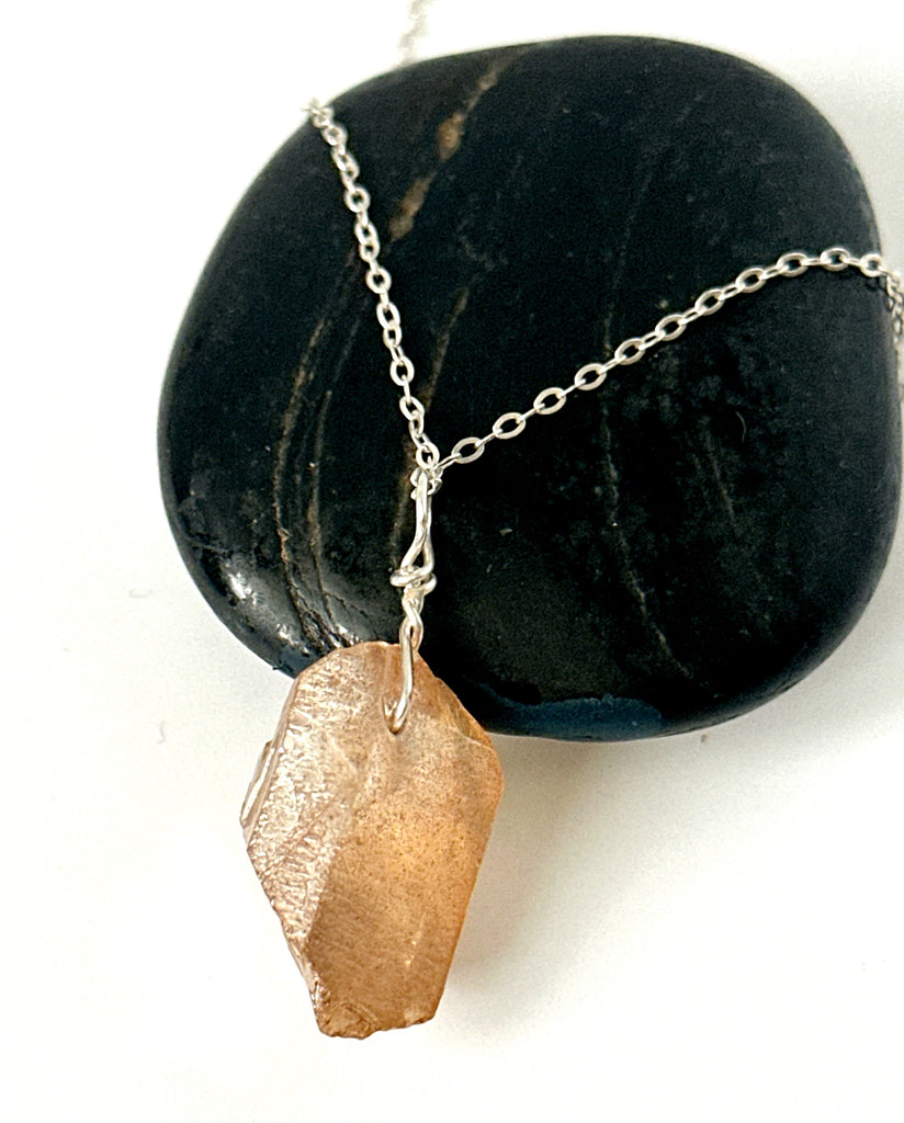 Aura Tangerine Crystal Quartz Silver Pendant Necklace.