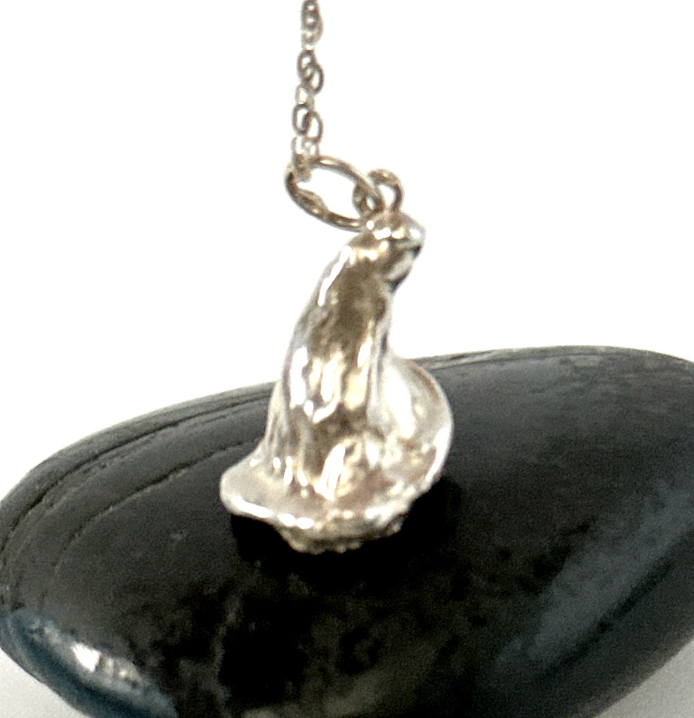 An intriguing water cast necklace that resembles ‘Harry Potters Hat’ that naturally formed whilst the molten silver hit the water.