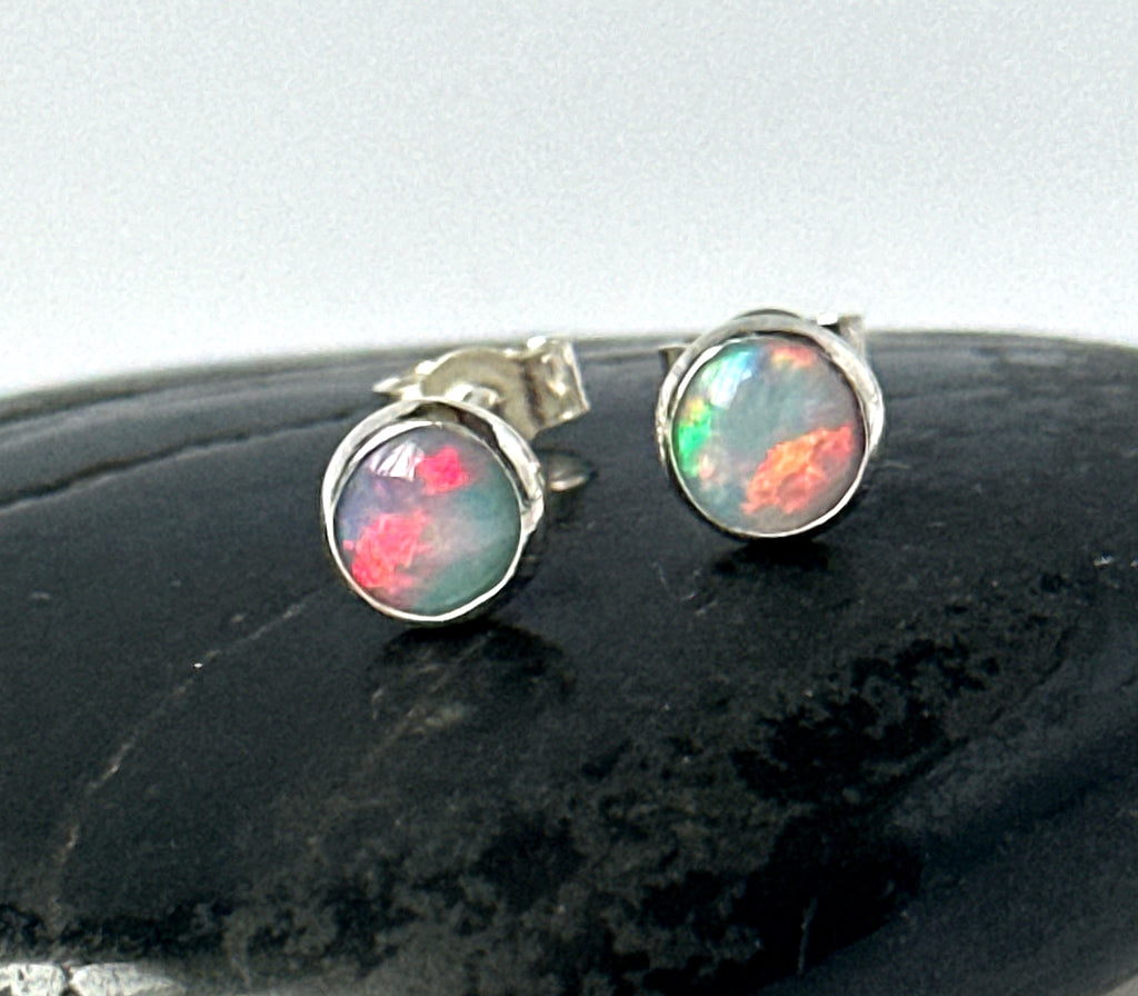 Coober Pedy Opal Silver Stud Earrings