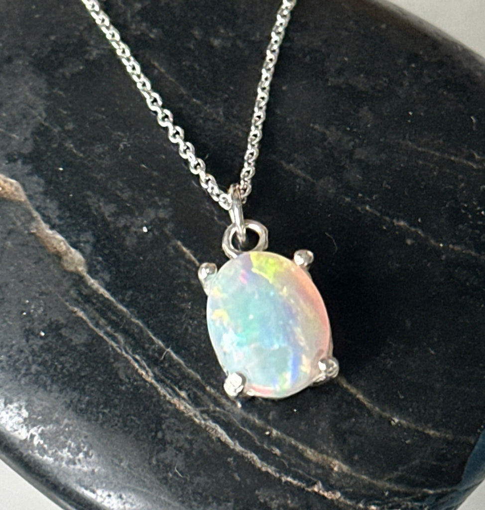 Coober Pedy Opal Sterling Silver Pendant Necklace