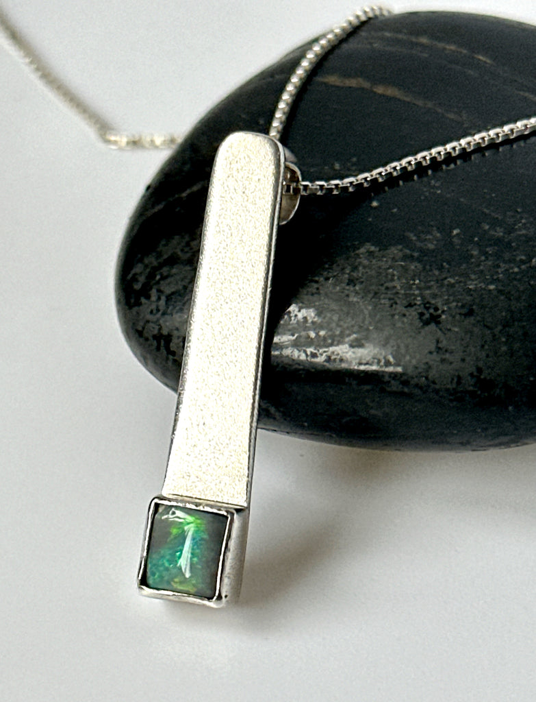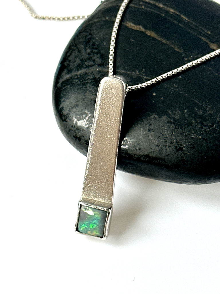 Lightning Ridge Opal Brushed Sterling Silver Pendant Necklace - Glitter and Gem Jewellery