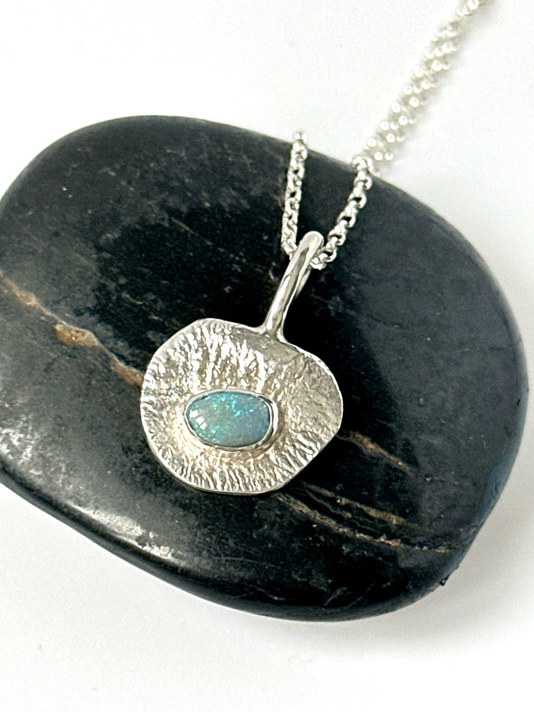 Lightning Ridge Opal Sterling Silver Textured Pendant Necklace